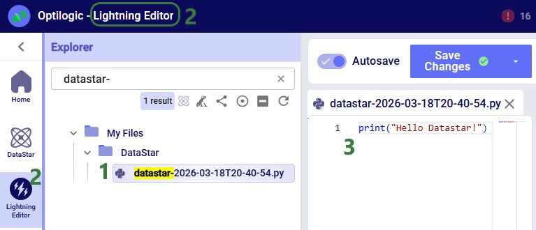 Instead of using an existing file, users can click the Create File button in the Code File area (see bullet 10 underneath the first screenshot of the Code File section) to create a new script directly on the Optilogic platform: