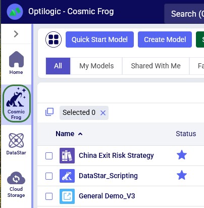 Please note that Cosmic Frog models can also be found and managed through the Explorer application, please see the "Getting Started with the Explorer" Help Center article for more details.