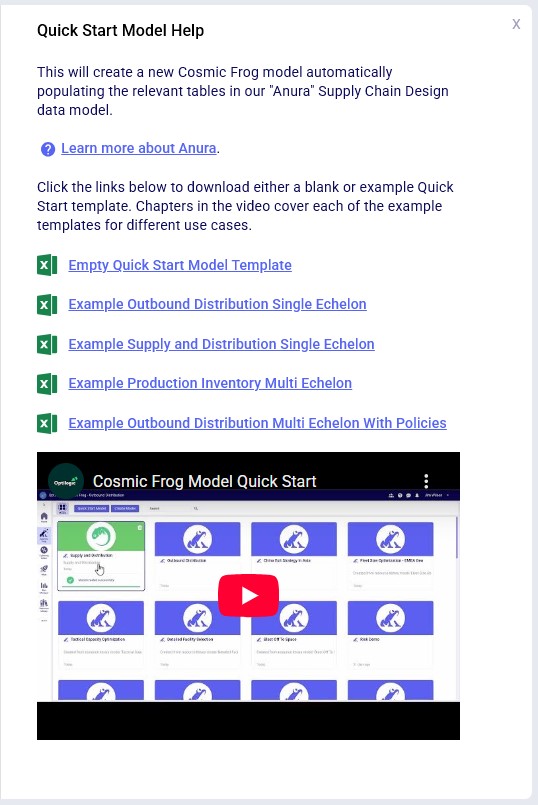 Choose to either create a new empty Cosmic Frog model or one from a template.