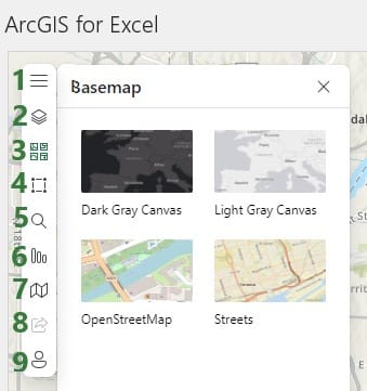 The other configuration options for the Map are found on the left-hand side of the Map configuration pane: