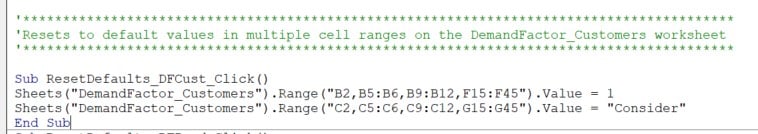 Each of these buttons has a Sub procedure assigned to it, let’s look at the one for the “Show Flows with Customers” button: