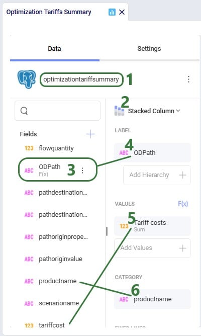 In this appendix we will show users how to create a stacked bar chart for each path origin – path destination pair, showing the tariff costs by product.