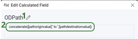 To create the OD Path calculated field, click on the plus icon at the top right of the Fields list and select Calculated Field which brings up the Edit Calculated Field configuration window: