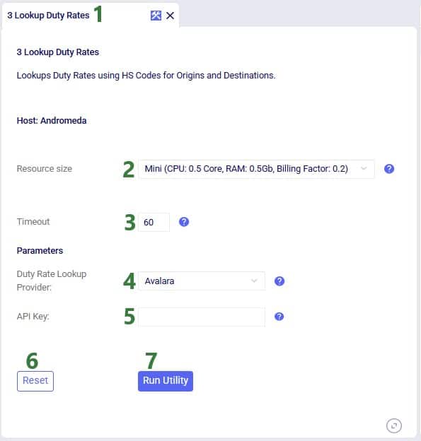 The latter 2 utilities hook into Avalara APIs, and users need to use / obtain their own Avalara API keys for each to be able to use these utilities from within Cosmic Frog or the Tariffs Builder Excel App.