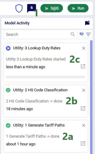 When running a utility in Cosmic Frog, user can track the progress in the Model Activity window: