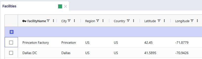 In order to model tariffs from/to a region or country, these fields need to be populated in the Customers, Facilities, and Suppliers tables: