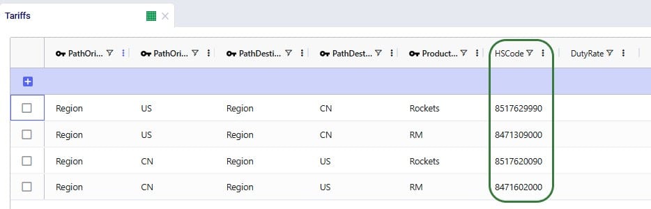 After running the 2 HS Code Classification utility, we see that the HS Code field in the Tariffs table is now populated: