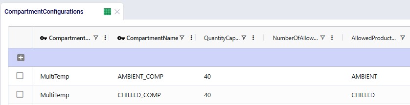 This table defines the structure and rules of the compartments that make up each configuration. Add one row per compartment; rows with the same Compartment Configuration Name form a single configuration.