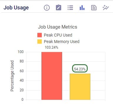 In conclusion, for this scenario we started with a 2XS resource size. Using the Run Manager, we reviewed the percentage of memory used at peak usage in the Job Usage Metrics and concluded that a smaller 3XS resource size with 2Gb of RAM should still work fine for this scenario, but an even smaller 4XS resource size with 1Gb of RAM would be too small. Test runs using the 3XS and 4XS resource sizes confirmed this.