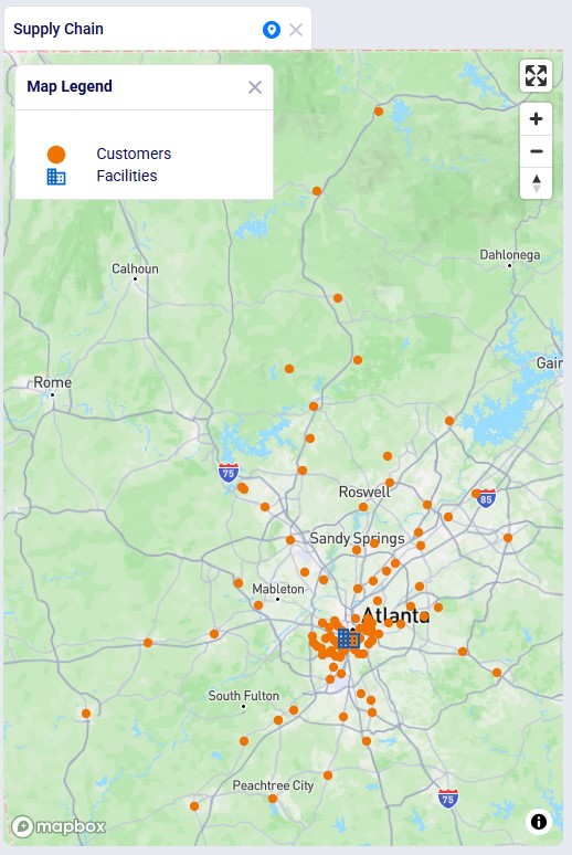 Let us also have a look at the customer and distribution center locations on the map before delving into the scenario details: