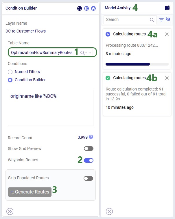 Users can monitor the progress of the waypoint routes generation by opening the Model Activity panel: