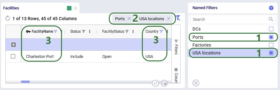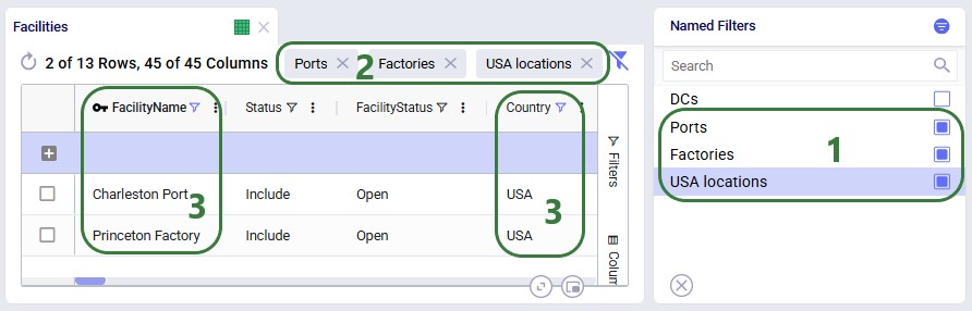 Named Filters are an exciting new feature which allows users to create and save specific filters directly on grid views, to then be utilized seamlessly across all policies tables, scenario items and map layers. For example, if you create a filter named “DCs” in the Facilities table to capture all entries with “DC” in their designation, this Named Filter can then be applied in a policy table, providing a dynamic alternative to the traditional Group function.