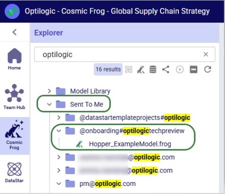 Similarly, there is a quick search option to find all Cosmic Frog models in the user’s account: