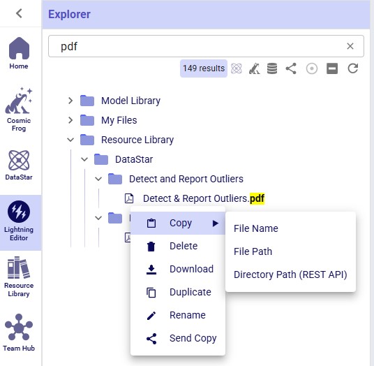 In this final section of the Explorer documentation, we will cover the options users have from the context menus that come up when right-clicking on files and folders in the Explorer. Screenshots and text will explain the options in the context menus for folders, Cosmic Frog models, text-based files, and all other files.