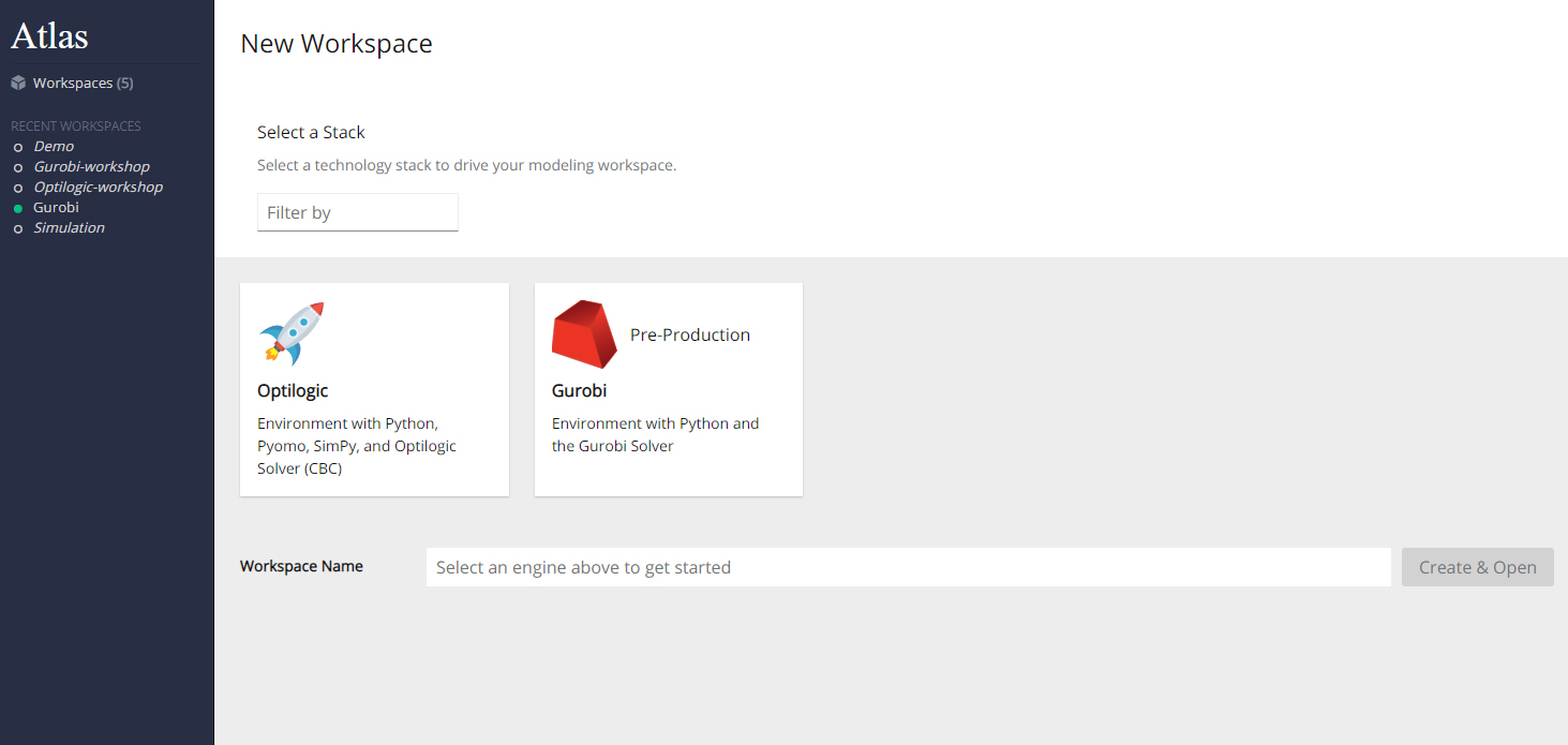 • Who can access the Gurobi solver? Gurobi can be accessed by any Optilogic user. Once you create a new workspace, you’ll have the option to select the Gurobi solver.