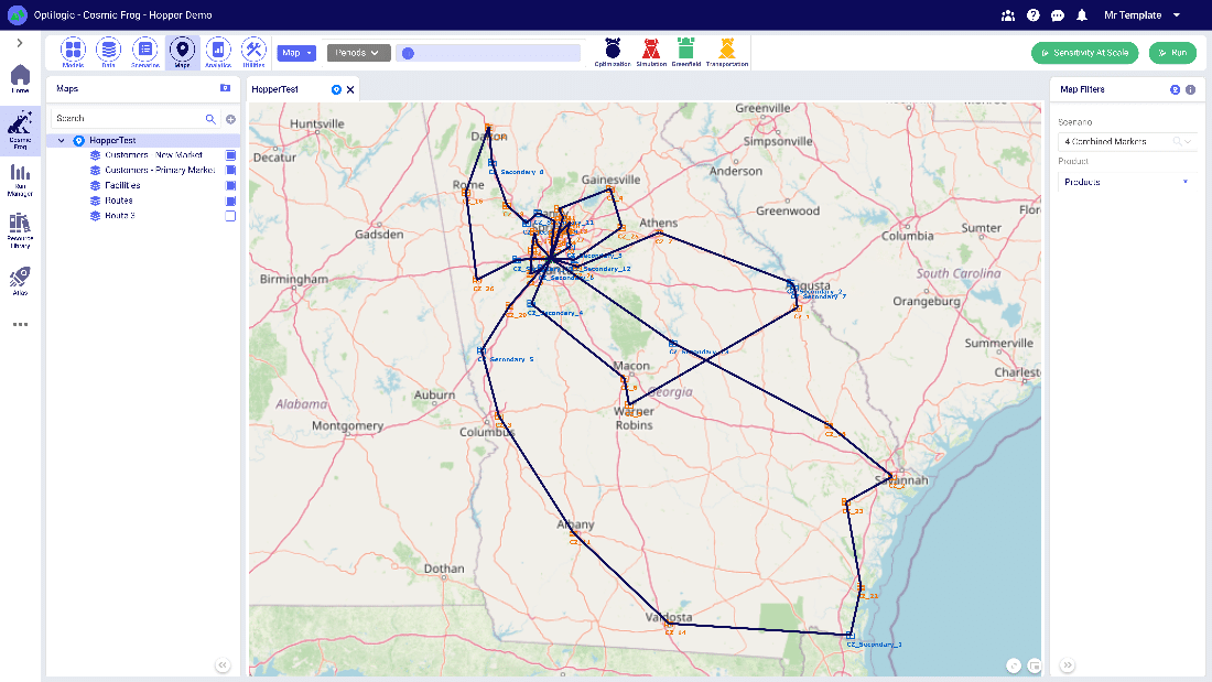 Cosmic Frog Hopper automated route optimization enables companies to answer questions like: