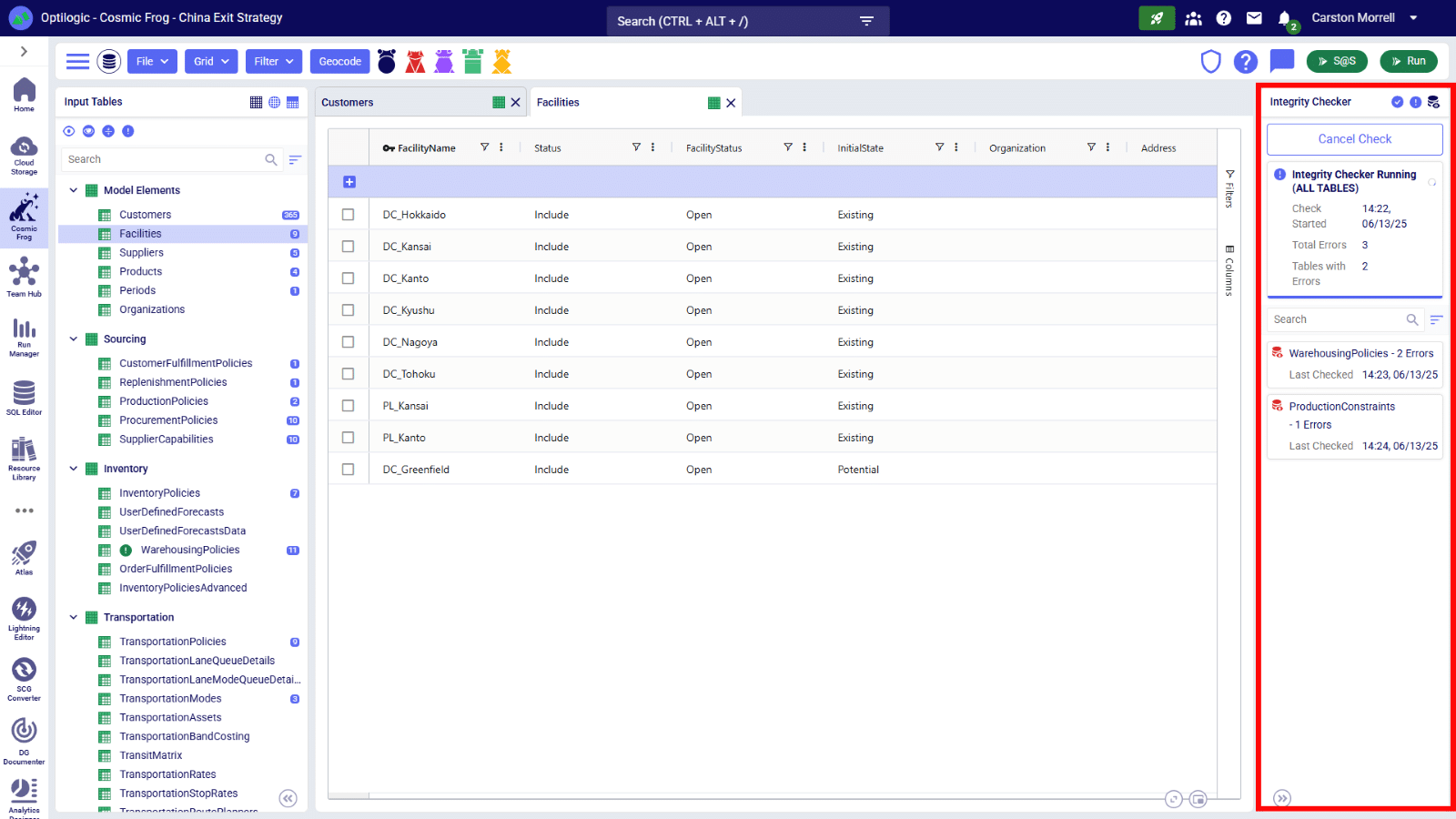 Data issues are one of the top causes of modeling errors and delays. With the new Integrity Checker, Optilogic gives modelers a built-in tool to proactively find and fix issues before a solve.